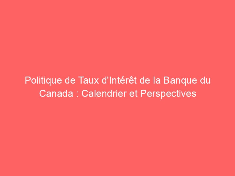 La Banque du Canada a établi un calendrier pour ses annonces de taux d’intérêt. Pour 2025, les décisions sont prises à des dates spécifiques chaque année. Vous pouvez consulter le calendrier des taux pour plus de détails.