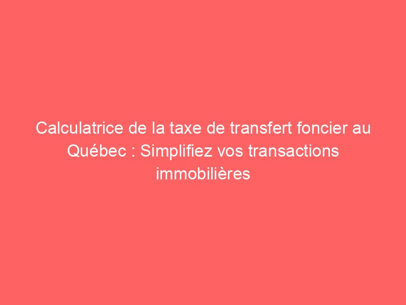 Calculatrice de la taxe de transfert foncier au Québec : Simplifiez vos transactions immobilières