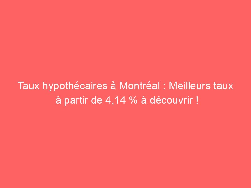 - Les meilleurs taux hypothécaires à Montréal commencent à 4,14 %.
