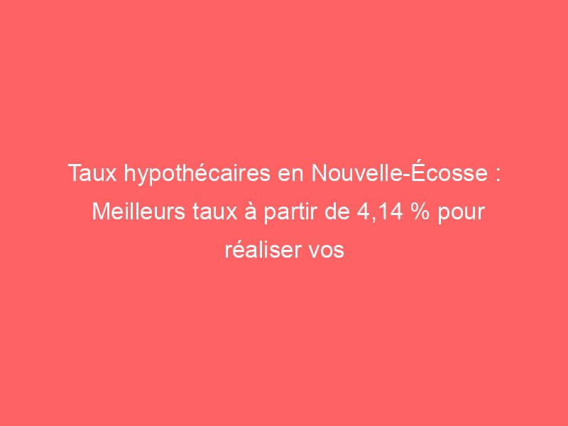 - Vous pouvez actuellement trouver des taux hypothécaires à partir de 4,14 % en Nouvelle-Écosse.